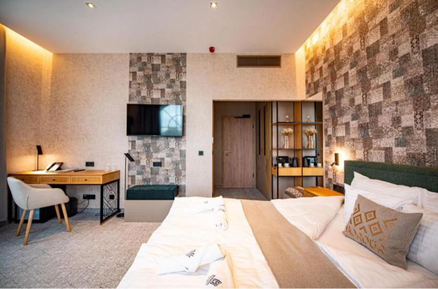 - Pótágyazható: ebből a szoba típusból 1 db, amely egy 150×200 cm fekvőfelülettel, akár két felnőtt részére is kényelmes pótággyá alakítható. Az elérhetőségről kérjük érdeklődjenek a foglalást megelőzően.