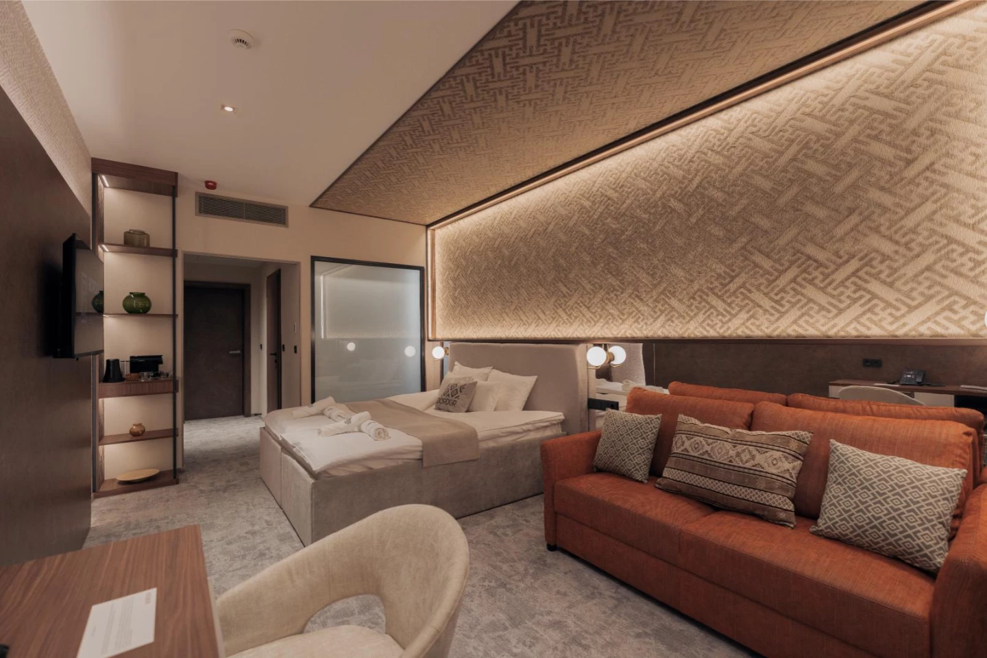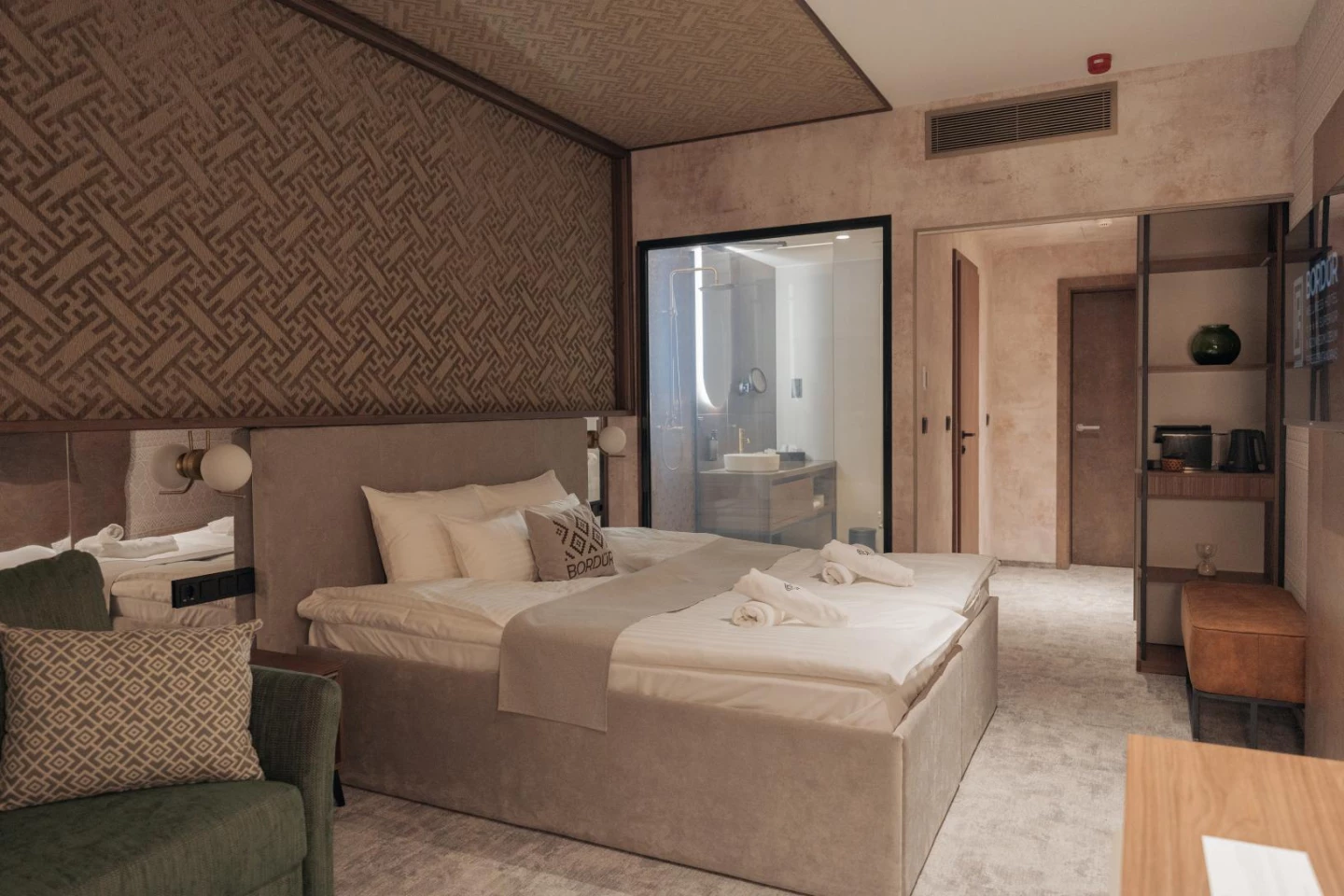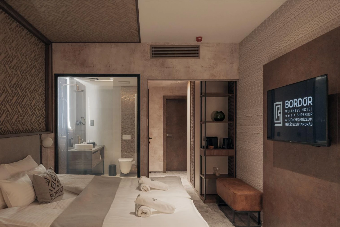 Tökéletes választás pároknak, akik romantikus kikapcsolódásra vágynak. A szálloda új építésű szárnyában található, exkluzívan bútorozott, modern berendezésű szoba épített zuhanykabinnal felszerelt fürdőszobával, amelyet a szobától egy elektronikusan átlátszóvá kapcsolható matt vagy átlátszó üvegfal választ el. A teraszok és erkélyek mindegyikén ülőbútor szolgálja a teljes kényelmet.